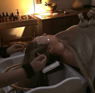 Il s'agit d'un traitement de massage capillaire complet de luxe, comprenant un lavage, un masque capillaire ,aromathérapie, massage crânien ayurvédique pour stimuler le cuir chevelu, massage et masque du visage, sonothérapie.